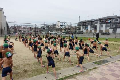 学習の最初にする準備運動にも慣れてきて,大きな動きで取り組んでいます。