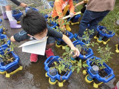 生活科で育てているミニトマト,ずいぶん成長しましたね!