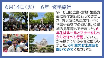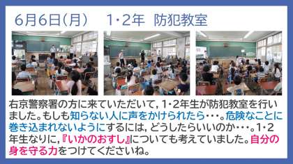 以前,中庭での集合型の引き渡し訓練を行っていましたので,今年度は各教室での引き渡しの形で行いました。子どもたちは,まじめに落ち着いて訓練に参加していました。これからも,万が一の場合に備えて,いろいろな形での訓練を重ねていきたいと考えております。
