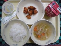 今日の給食は,ごはん,牛乳,なま節のしょうが煮,だいこん葉のごまいため,かきたま汁です。