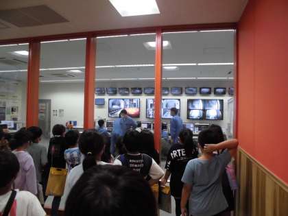 ごみを燃やした際に出る熱は,発電にも使われています。大きな音が聞こえてきて,蒸気タービンはなんと1分間に6000回も回っているそうです。ものすごい量の電気を発電することができることを知り,みんな驚いていました。