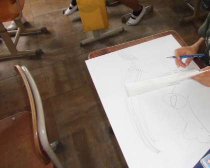 6月を感じるものを探し,描いていきます。まずは,線描を行いました。次の時間からは,絵具を使って色付けをしていきます。