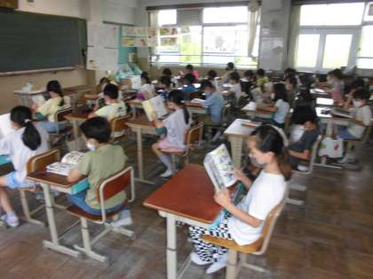 『ウォーミングアップタイム』の様子です。心落ち着けて,読書に励んでいます。