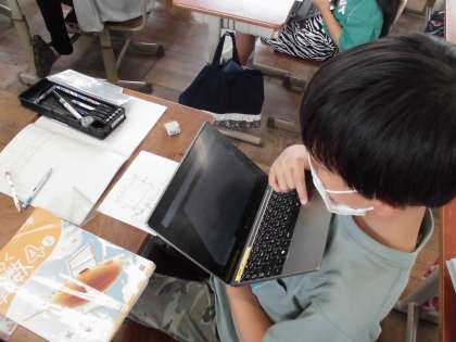 垂直な直線や平行な直線のかき方を使って,長方形をかきました。また,かいたことをロイロノートを使って伝え合いました。