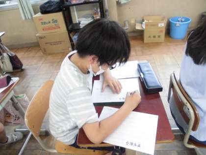 硬筆の学習を行いました。文字の大きさと配列に気をつけて書きました。手本を見ながら,一文字一文字丁寧に書いていました。