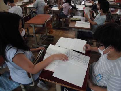 つなぎ言葉の意味を学び,つなぎ言葉を使って文章を書きました。つなぎ言葉によって,意味が全然異なります。書いた文章を交流して,感じ方を伝え合っていました。
