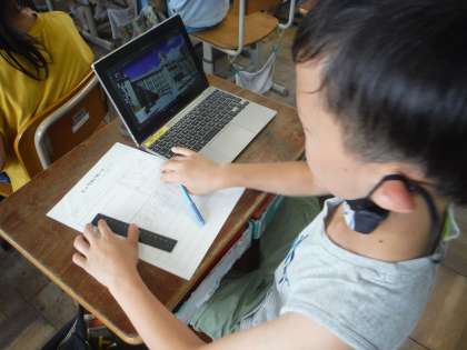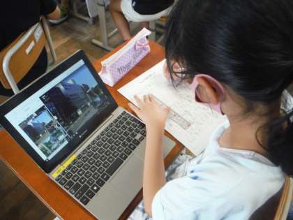 社会科では,「大きなターミナルの近くの様子」「店やビルが集まっているところの様子」「神社やお寺が集まっているところの様子」「文化施設が集まっているところの様子」をまとめました。次は,わたしたちがくらす京都市はどんなまちなのかについて学習していきます。