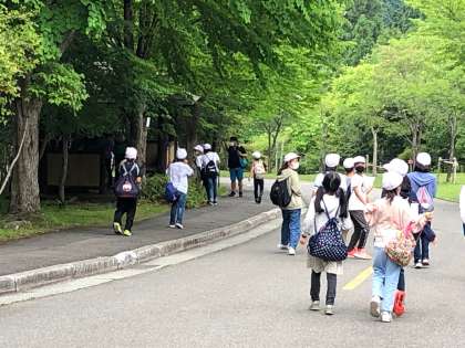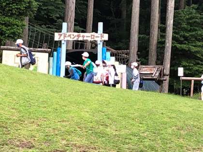 午後のプログラム、スコアオリエンテーリングです。グループで指定場所にある言葉や文字を集めて問題を解いていました。はぐれた友達を探したり、しんどくなった友達を気遣ったりするやさしい姿もたくさん見られました。何よりみんなの協力する姿勢が素敵です!
