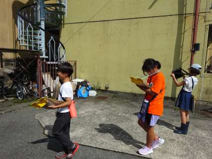 地域のごみはどこにどんなものがあるのかを確かめに行きました。三条通や有栖川など,事前に気になるところをあげて,実際に行って確かめました。「思っていたよりもごみが少ないな」「たばこのごみが多いな」など,様々な気づきがありました。