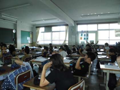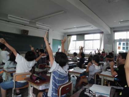 学習のまとめをしました。空気を閉じ込めて力を加えると,空気の体積は小さくなりますが,水を閉じ込めて力を加えても,水の体積は変わらないこと確かめました。体を使って,イメージを再確認していました。