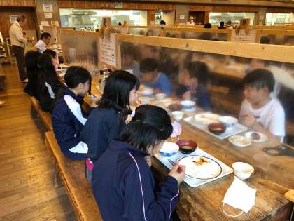 今日の夕食です。たくさん活動してお腹も空いていたのか、ご飯やおかずのおかわりをする人もいました。美味しくいただき、ご馳走様でした!