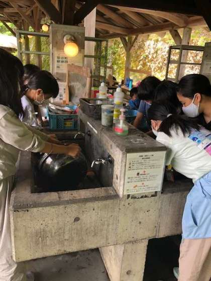 美味しくいただいた後は、みんなで後片付けです。みんなとっても熱心な片付けぶりで、お皿を洗ったり、鍋をこすったり…。『もう十分だと思うよ』と、声をかけるほどでした。チェックで一発合格する班もたくさんありました。