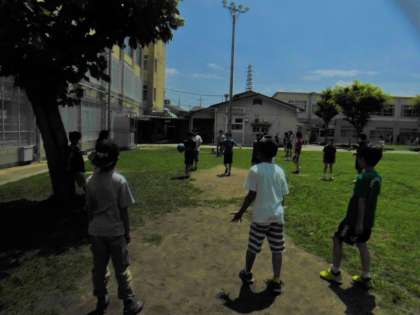 暑い時間での外遊びなので,初めは帽子をかぶっていましたが