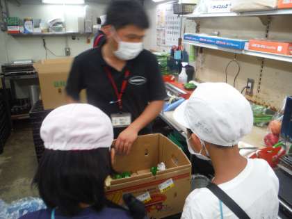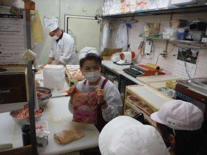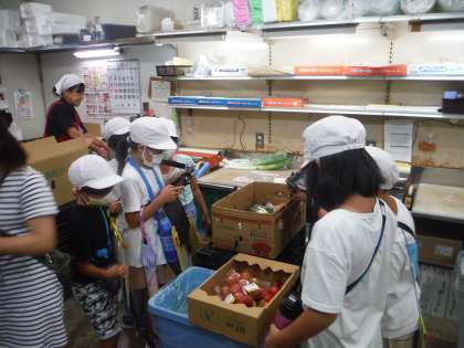 品物の種類や品物のならべ方,働いている方の様子など,店内をじっくり見学することができました。また,売場以外にも奥の部屋にも入れてもらい,調理の様子や食材がどのようにして売られるのかなど,普段見ることができないところまで見学させていただきました。みんな目を輝かせ,「すごーい!!」と大興奮でした。