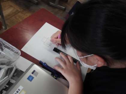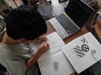 垂直や平行,平行四辺形や台形など,習ったことを使って身の回りにある図形を探したり,自分でかいたりしました。今回は自分で課題を選んで,学習を進めていました。みんなとても楽しそうでした。