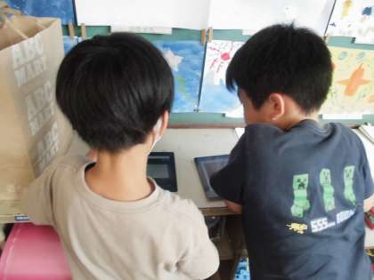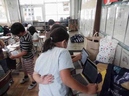 小数の学習で、mを使わずにkmを使って距離を表すにはどうすればよいのかを考えました。自分で考えたことをロイロノートを使って伝え合い、自分の考えをはっきりさせたり、よりよいものにしたりすることができました。