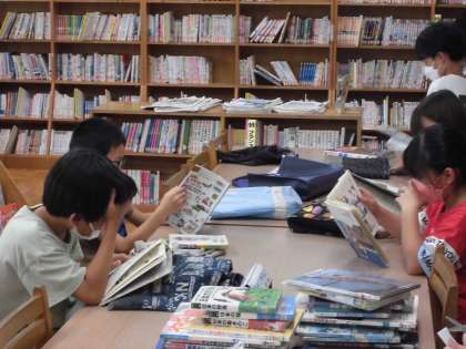 図書室で夏休みに読む本を借りました。今回は3冊借りられるということもあり、みんなウキウキしながら本を選んでしました。いろんな本に触れて、自分の世界を広げてほしいと思います。