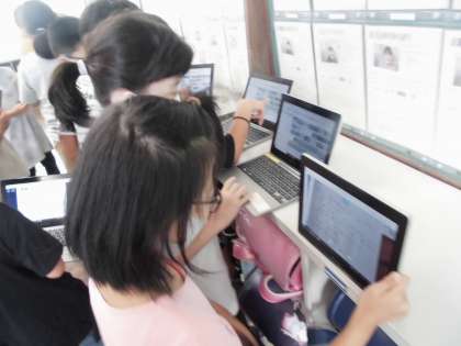 小数のたし算をどうすればよいのかを考え、自分の考えを伝え合いました。様々なやり方がありましたが、「整数と同じように位をそろえて計算する」「小数点をつける」といったポイントは共通していました。