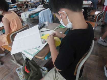 理科の学習では,風の力で動く風車を作りました。子どもたちは試行錯誤しながら取り組んでいましたが,風車が完成すると嬉しそうに回していました。「回った!」「横から風を当てても回るんや」などいろんな感想を口にしていました。