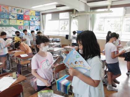 自分が好きな時刻と理由を質問して伝え合いました。日課や時刻の言い方に慣れ、何回もやり取りを行うことができました。最高で7人とやり取りができた人がいました。Good Jobです!