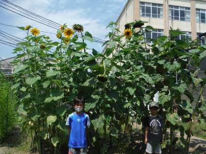 夏休みに入りました!学校のひまわりもぐんぐん成長し、きれいな花を咲かせています!!