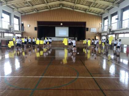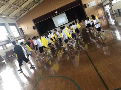 先週から始まった,体育の表現運動。集団で動きを合わせたり,自分の位置を覚えたりしてきました。さらに。今週からはフラッグを持って練習しています。列や動きがぴったりと重なるとすごく気持ちよいですね!