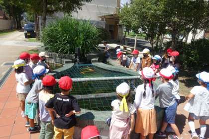 とんぼ・あり・うさぎ・めだか、たくさんの生き物を見つけました。