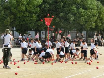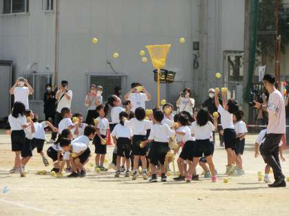 高得点を狙って、高い得点のカゴにがんばって玉を投げる姿がみられました。