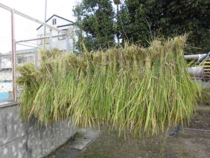 しっかり束にして持ち,カマの刃先のあたりでスッとかりました。