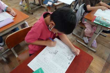 登場人物たちが、どんなお話をしているのか、またどんな気持ちなのかを想像しました。