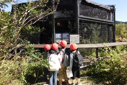 ビンゴの中にあるニホンツキノワグマを探して協力して回っていました。