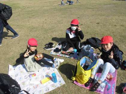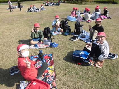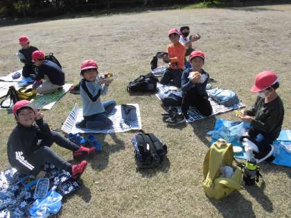 たくさん歩いて、お腹はペコペコ。楽しみにしていた、お弁当の時間です。みんな、愛情たっぷりのお弁当を美味しそうに食べていました。朝早くから、お弁当作りありがとうございました。