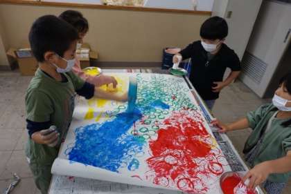 いろいろな材料を使って、ぺったんぺったんと、形をうつしました。向きを変えたり、重ねてみたり、たくさん試して楽しむことができました。