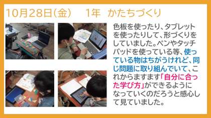 校庭の木々の紅葉も見られるようになりました。過ごしやすい秋、子どもたちの学習活動も活発になってきています。