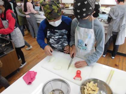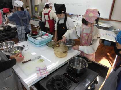 今日は、5年1組のみんなが調理実習をしました。