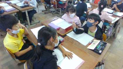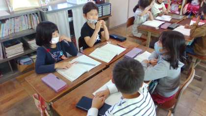 国語の学習では、グループの友だちの相談事を聞いて、