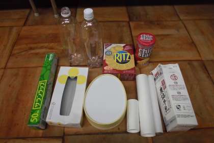 おかしやティッシュの箱、牛乳パック、ラップやトイレットペーパーの芯、