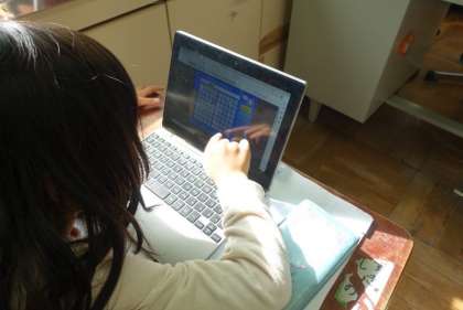 インターネットの検索の仕方を学習しました。50音順に並んだソフトキーボードを使って、調べたいキーワードを入力しました。