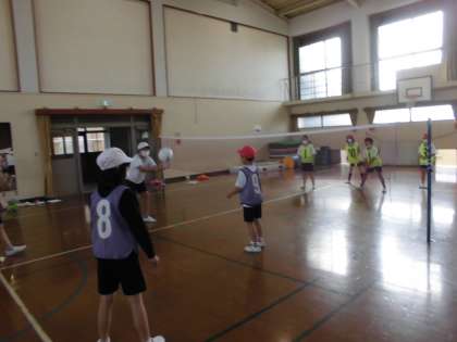 ソフトバレーボールの学習をがんばっています。4年生の体育で、初めての球技であり、チームで行う学習ですが、準備や片付けを進んで行なう姿がたくさん見られます。また、チームで声をかけあって、ボールをつないだり、拾ったりすることができています。まだまだうまくいかないこともありますが、少しでもうまくいくように考えて、チームで高めあってほしいと思います。