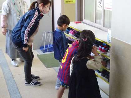 1年生 靴はそろえて入れます