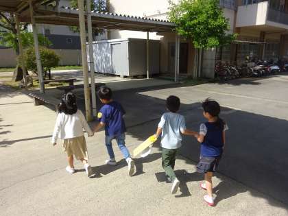 授業をしている教室の前では、約束を守って、静かにたんけんしていました。