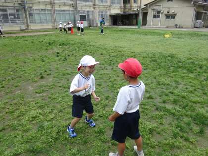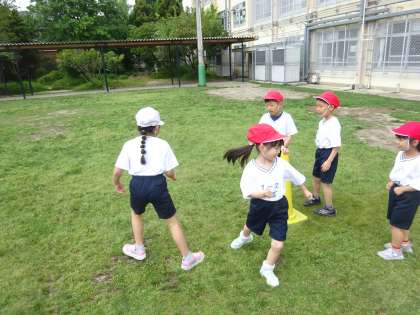 4〜5人のチームに分かれて、陣取り遊びをしました。