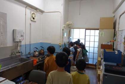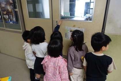 何をする教室なのか、案内板を読みながら説明していました。中に入ることのできた部屋もあり、とても楽しそうでした。しっかりと案内していて、とても頼もしく感じました。
