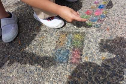 とうめいな容器に色をつけたあとに、どんな風にうつるのか確かめました。きれいな色合いを楽しんでいるうちに、もっと工夫したいところを見つけて、さらに色をつけていました。