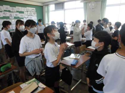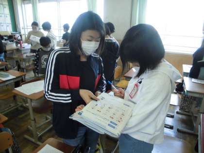 知っている英語を使った積極的なやりとりが見られました。