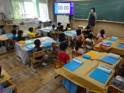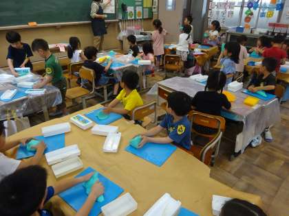 体の全体をつかって、ひものかたちをうまく作りながら作品をつくりました。
