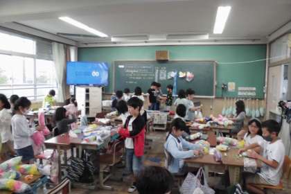 図工の学習で教室を見てみると、何か面白い生き物がたくさんいました。