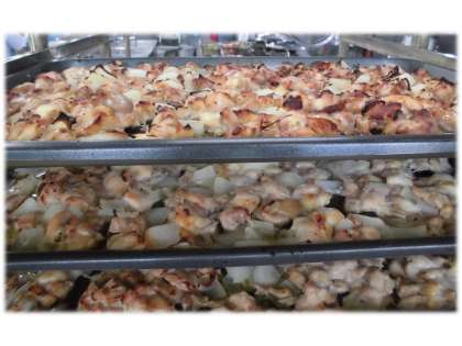 「鶏肉のてり焼き」は調味液につけこんだ鶏肉と玉ねぎをスチームコンベクションオーブンで焼きました。ごはんによく合いとても人気のメニューでした。
