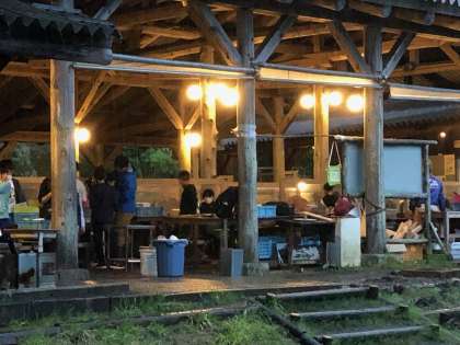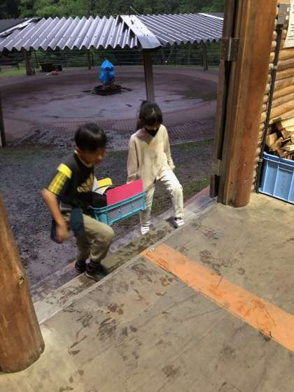 食べ始める前から降り出した雨。後片付けの最中も強く降り出しました。そんな中、後片付けも頑張っていました。