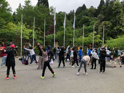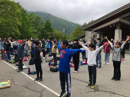 朝の集いで、今日の目標を確認して、その後、ラジオ体操で体ほぐしもしっかりしました。